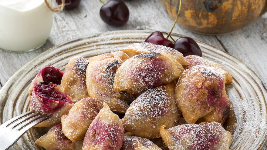 Prae kuumas õlis kuldseks. Ära korraga liiga palju vareenikuid õli sisse pane, muidu jahtub õli liialt ja vareenikud võivad omavahel kokku hakata. Tõsta vareenikud õlist välja köögipabaerile nõrguma. Puista peale tuhksuhkrut ja serveeri kohe koos kirssidega!