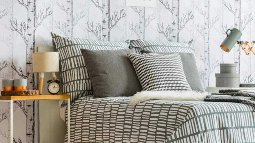 8. Valgustite ja mustritega liialdav magamistuba