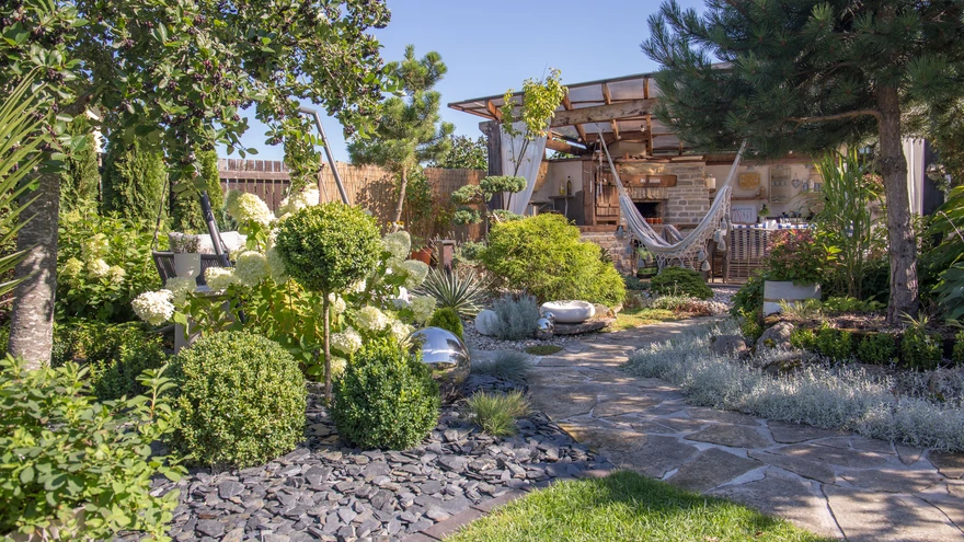 AASTA AED 2024 sai Bauhofilt 2500 € preemiaraha. | foto: Meeli TulikKui Marit ja Roman Õunap 2003. aastal oma praeguse kodumaja krundile tulid, oli siin vaid lage paeklibune maa. Nüüd võtab vastu lopsakas, mitmete lõõgastumisaladega aed, kuhu juhatab eriline värav.