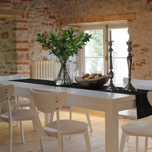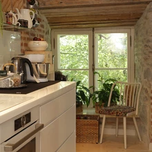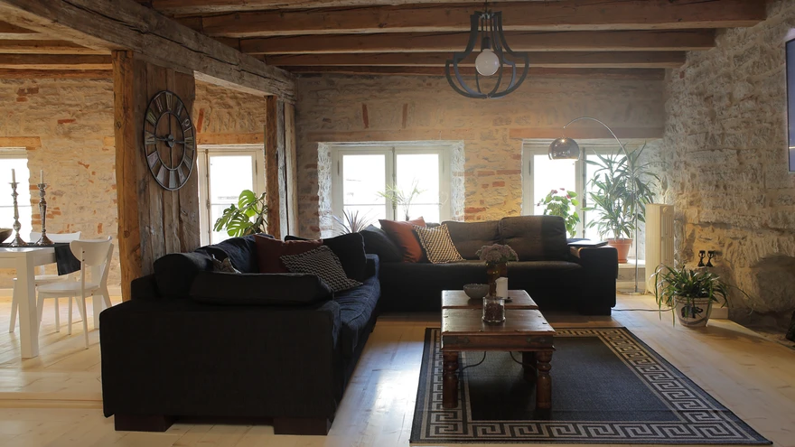 Elutoas on erinevate aegade kihistuste alt välja puhastatud paekivist ja tellisest seinad ning seintes olevad nišid. Soovist asju õigesti teha ja vanade müüridega leebelt ümber käia kutsusid koduomanikud appi restauraator Juhan Kilumetsa. Mis võimalik, säilitati, kus aga muud võimalust polnud, seal asendati uuega. Näiteks on eritellimusel valminud messingust kremoonid. Malmradiaatorid aga on tellitud Londonist.