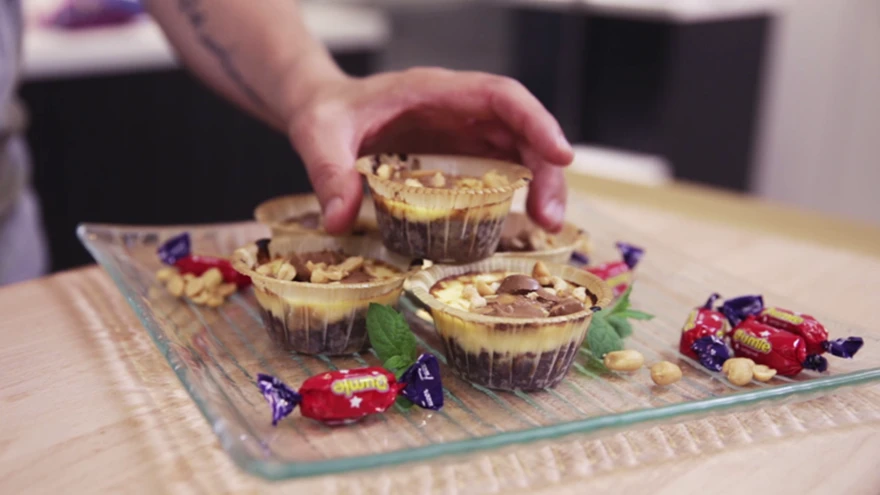 Kuumuta ahi 175 °C-ni. Purusta küpsised, lisage või ja segage need omavahel. Jaota küpsisesegu kümnesse vormi ja eelküpsetage viis minutit. Tõsta need ahjust välja jahtuma ja valmista jahtumise ajal täidis.