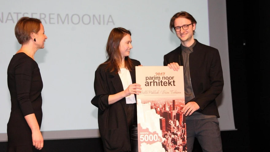 Noore arhitekti preemia pälvisid Sille Pihlak ja Siim Tuksam | foto: Reio AvasteKUMU Kunstimuuseumis toimunud Eesti Arhitektide Liidu üldkogul kuulutas kultuuriminister Indrek Saar välja noore arhitekti preemia 2017 (NAP) laureaadid, kelleks on Sille Pihlak ja Siim Tuksam arhitektuuripraksisest PART. Laureaatide puhul tõstis žürii esile nende tihedat koostööd Eesti puidusektoriga ja puidu kui ehitusmaterjali laialdast propageerimist ning aktiivset tegevust arhitektuurihariduse vallas.