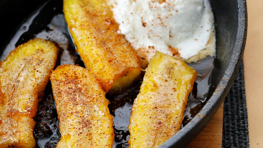 | foto: Juta KübarseppKa see banaanidessert on pärit USA-st, täpsemalt New Orleansist. Mõeldi välja 1950. aastatel. Flambeerimine annab roale lisamaitse ja on efektne, aga kui vaja, võib banaane ka lihtsalt veidi kauem pannil kuumutada.