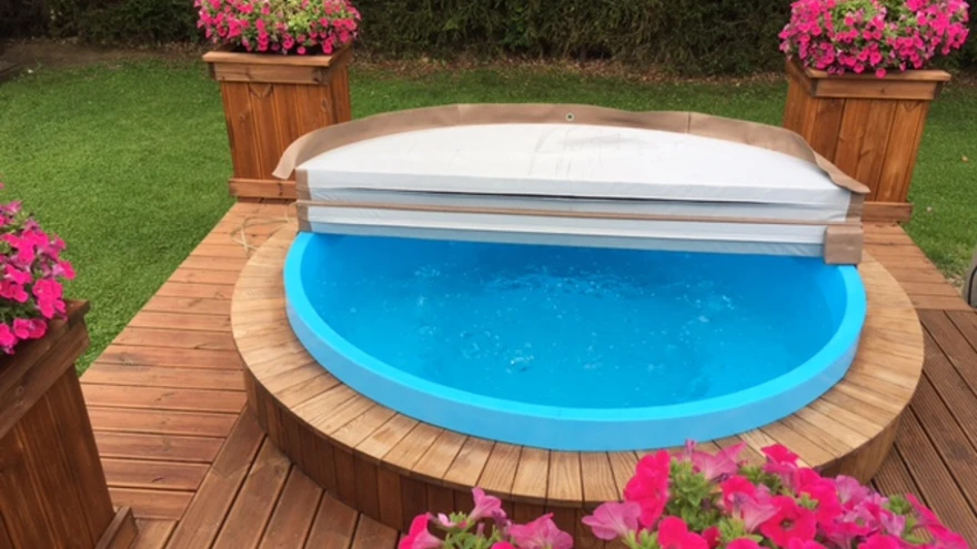 Puidust lillekastid ja jacuzzi mõjuvad koos õdusalt ja pilkupüüdvalt. | foto: Tootja/bassein.eePõhjamaine kliima pakub meile päikest ning sooja võrdlemisi vähe. Siiski saab ka eestlane oma koduaiast rõõmu tunda igal aastaajal—köetav välibassein või kuumaveetünn on eksootiliseks elemendiks nii külmal talvel kui soojal suvel.