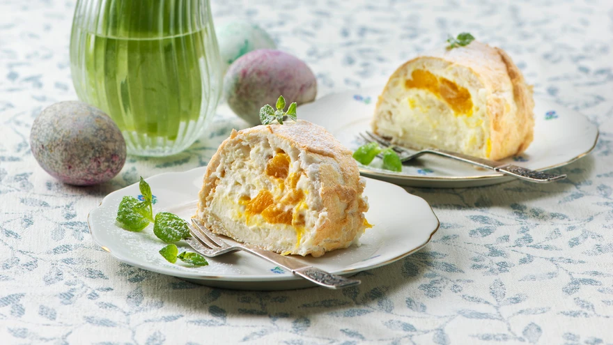 | foto: Jaan HeinmaaPuuvilja- ja kohupiimatäidisega beseerull on saanud alguse Budapesti rullist, pähklite asemel on besees aga mandlilaastud. Täidisesse sobivad nii konservitud virsikud, aprikoosid kui ka mango.