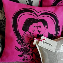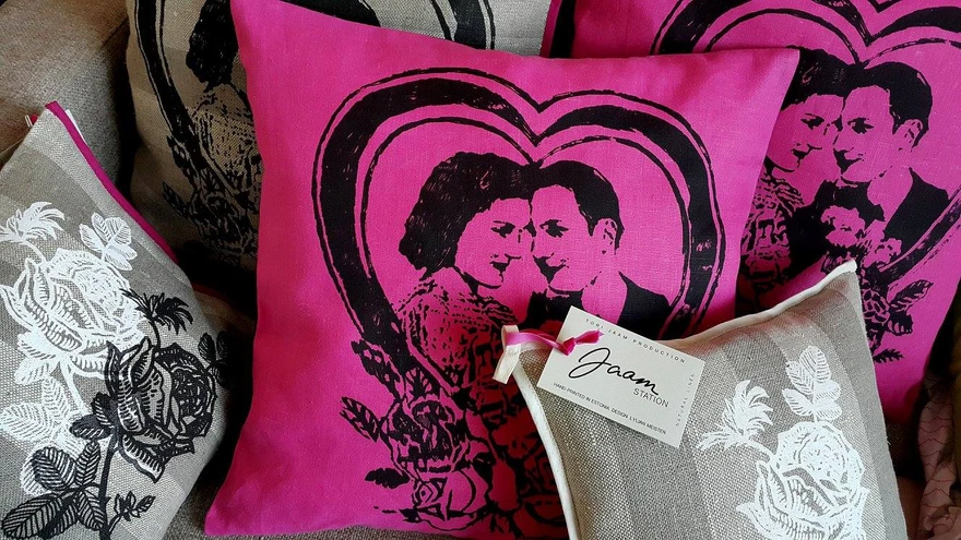Disainer Lylian Meisteri Tori jaamast inspireeritud trükitekstiilid | foto: erakoguDisainer Lylian Meister kolis mullu sügisel elama ajaloolisesse Tori raudteejaama, mis tema sõnul on küll tublisti renoveerimist vajav, ent väga inspireeriv keskkond. Nii hakkaski ta looma ka jaamast inspireeritud tootesarja - valentinipäevaks said valmis ema romantilisest noorpõlvefotost sündinud erksa moega padjad.
