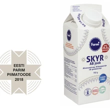 Eesti Parim Piimatoode 2018 on Farmi AB joogiskyr - naturaalne maitsestamata clean label jook, milles lisaks kõrgele valgusisaldusele annavad tervisele tuge ka kõhusõbralikud atsidofiil- ja bifiidobakterid.