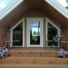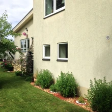"Maja ees varjuga terrassil on väga mõnus istuda ka siis, kui õues ladistab vihma, nagu sel suvel tihti ette tuleb. Oleme terrassi kaunistanud ka kenade lillede ja mööbliga kus on mõnus hinge tõmmata," kirjeldab Eliise.