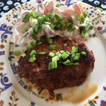 Kõrvale tegime tomati-redise-hapukoorekastmega salati ja peale veidi rohelist sibulat.