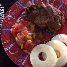 Juurde ananassirõngad ja letšo. Uhke suur praad sai ja kõigil sööjatel kõht kõvasti täis. Meie perele see meeldis.