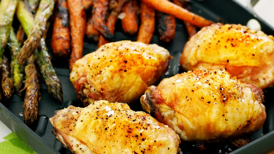 | foto: Juta KübarseppTegelikult sobib see retsept pigem porgandite kui kana jaoks. Kana võib olla nii poest ostes juba valmis maitsetatud või siis lihtsalt soola-pipraga maitsestatud ja oliiviõliga peitsitud, nagu meil fotol. Allpool on ära toodud ka üks huvitav retsept kana marineerimiseks.