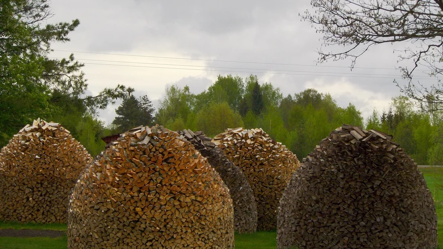 Vaatamist väärivad aiakaunistused- peremehe kunstiteosed, "puukuhjad" | foto: Maiu PõldojaInimesed, kel kodus ahiküte, on tihti mures: kuhu panna puud? Kes aianurka kuuri ehitada ei taha, võib aga küttevaru hoopis aia pilgupüüdjaks sättida!