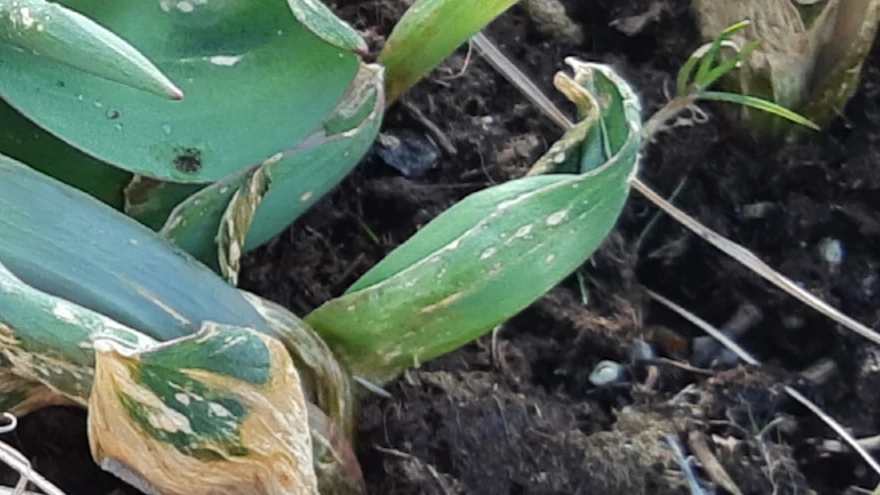 Tulbikahjustus. | foto: Eneli KägerSoe ja vesine talv pani levima seenhaigused. Nüüd tuleb kiirelt tegutseda ning sibullilled ja püsikud haiguste küüsist päästa.