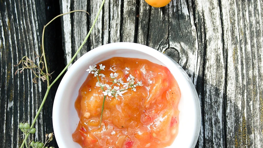 Alõtša-õuna tšatni. | foto: Marina PuškarViljapuuaia külluslik saak tuleb väärindada ja talveks tallele panna. Paljudel on küsimus, mida teha tohutu hulga alõtšadega? Siin on välja pakkuda üks retsept.