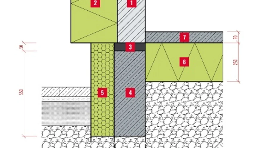FOAMGLAS® Perinsul HL efektiivsust on kinnitanud arvukad simulatsioonid. Värskeim neist viidi läbi Kaunase Tehnikaülikoolis arhitektuuri ja ehituse instituudis, kus teadlased mõõtsid kahe erineva soojustuslahenduse külmasildu sokli vuukides. Esimesel juhul ümbritseti vundament väljast 150 mm vahtplastist isolatsiooniga ning vundamendi põhi soojustati altpoolt 100 mm vahtplastiga (Joonis 1).