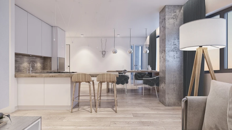 Omaette rolli mängib ka see, kas köök asub pigem magamistoa läheduses või mitte ja kui kiiresti ning mugavalt köögialale ligi pääseb. Näiteks Kalevi Panorama uusarenduse puhul võeti kasutusse ühendatud elamispinna kontseptsioon, mis võimaldab soovi korral köögi elutoast näiteks söögilaua abil eraldada. Samas on võimalik soovi korral neid piire mitte luues kogu eluaset hoopis ruumikamana näidata. Siinkohal mängib suurt rolli pere koosseis ja korterisisesed liikumistrajektoorid. Näiteks on mõistlik läbi mõelda, kuidas pääseda mugavalt ligi kohvimasinani, kus hakkab toimuma perekondlik söömine jne.