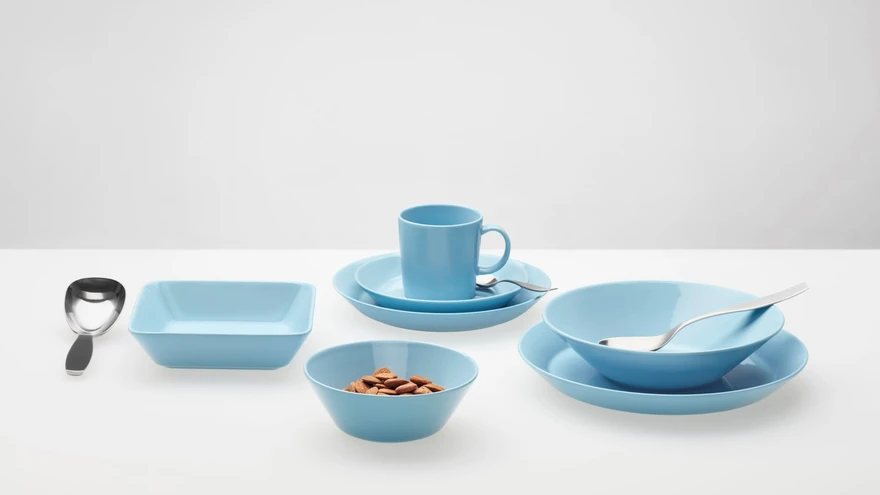 "Teema" - helesinine | foto: IittalaIittala rahvusvahelist tähelepanu pälvinud ning klassikuks tituleeritud lauanõude kollektsioon “Teema” on vahetunud aastanumbri puhul saanud värske ilme kahe uue värvi näol - karge helesinine ja uudne täppidega tumesinine.