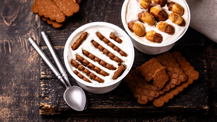 Tõsta jogurt lusikaga 1-liitrisesse potti või vormi ning silu pealt ühtlaseks. Aseta küpsised jogurtisse nii, et nende vahele jääksid võrdsed vahed. Kata vorm toidukile või kaanega. Tõsta külmkappi ja lase vähemalt 3 tundi taheneda.