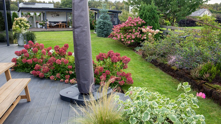 Konkursi "Aasta kodu 2024" väikeaia preemia saanud kaunis aed. | foto: Meeli TulikKui õed Kadri Lehenurm ja Triinu Järvi oma peredega Viimsi uuselamurajoonis asuvasse paarismajja kolisid, oli neil kohe selge, et aed rajatakse ühiselt. Kolida ei tulnud kaugelt ning piirkond oli juba tuttav. Tähtsaks peeti, et uues aias oleks ruumi kasvada viljapuudel ja marjapõõsastel ning jätkuks rohkelt õieilu.