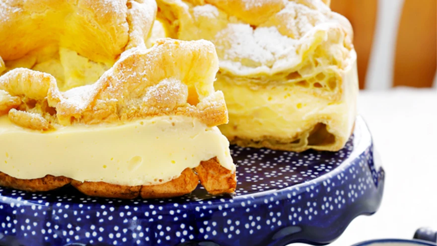 | foto: Juta KübarseppPoolas populaarne kook „Karpatka” on nime saanud Karpaatia mägede järgi. Kahe künklikuks küpsenud keedutainakihi vahel on maitsev keedukreem.