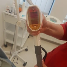 Siis tuleb viimaks kasutusele laserepilaator. LaserMedis on kasutusel kaks laserepilaatorit. Vaid hiljuti lisandunud uus Lumenis Light sheer Desire epilaator ning LightSheer DUET laserepilaator. Kasutasime neist viimast, mille kohta leiab täpsemat informatsiooni SIIT. Masinal on mitu erinavat „otsikut“. Üks instrument võimaldab vaakumabi tehnoloogiaga suurema pinna pealt karvu eemaldada. Aparaat tõmbab naha vaakumisse ning avaldab pinnale laserkiirgust. See protseduur ei ole absoluutselt valus ega ka ebameeldiv! Küll aga kaasnes protseduuriga loomulik kärsahais.