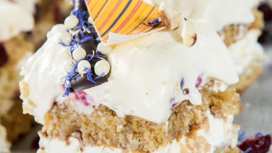 Sünnipäevatordis ka kodumaised ja kodused koostisosad – kamajahu, rabarber, tume rukkileib ja toormoos. | foto: TootjaKuna tegu on kodumaa väärika tähtpäevaga, siis eeldab ka pidulaua ehteks valmistatav tort pühendumist ja aja mahavõtmist. Loomulikult on sünnipäevatordis ka kodumaised ja kodused koostisosad – kamajahu, rabarber, tume rukkileib ja toormoos.