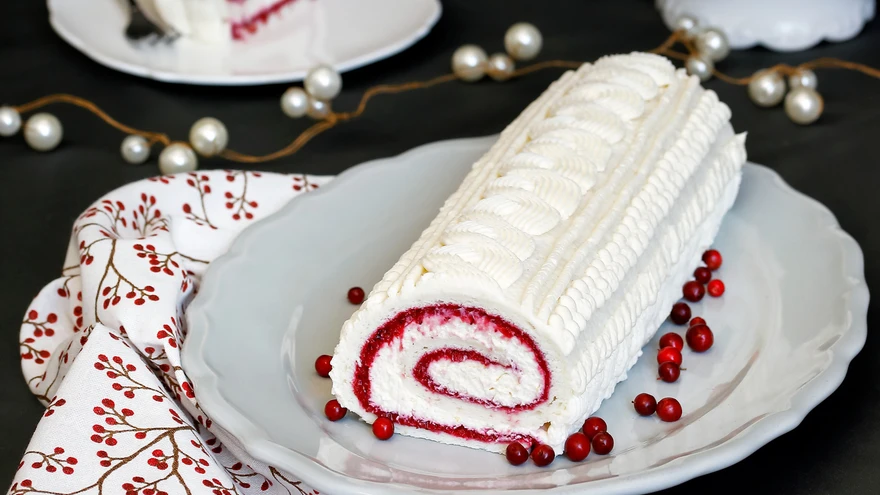 Küpseta 150 kraadi juures 12 minutit. Lase jahtuda. Keera biskviit ümber küpsetuspaberile ning eemalda biskviidi küljest paber või silikoonmatt. Nüüd keera biskviit veel kord ümber – nii jääb rulli keerates valgem pool väljapoole.