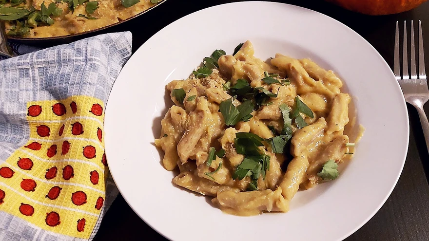 Sellele pastale annab juustuse meki maitsepärm - taimse kokakunsti salarelv, mis müügil pea igas suuremas toidupoes. Suurepärane kõrvitsahõrgutis lõunasöögiks.