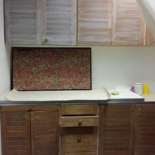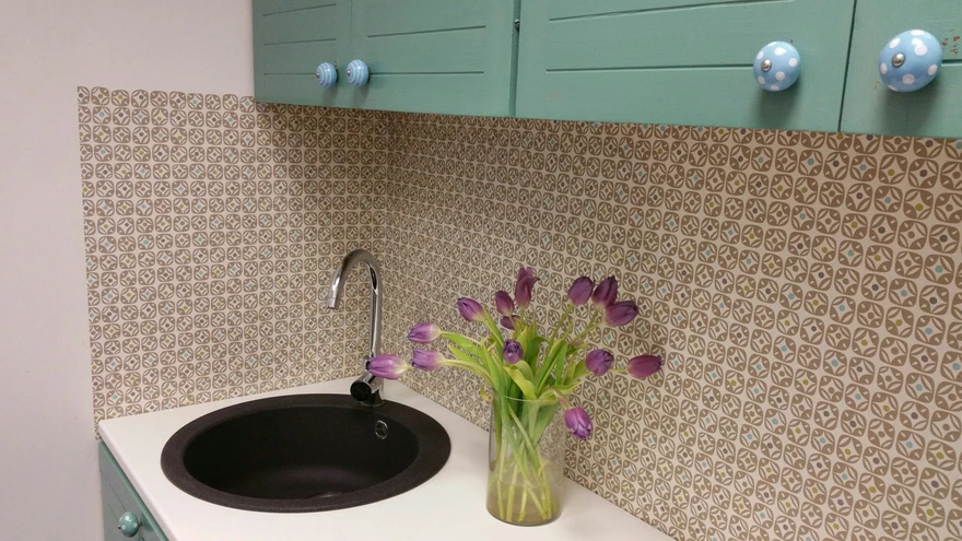 Nõukaaegne köögimööbel sai tublisti lihvimist ja uue, moodsa värvikuue - just sinise- ja rohelise erinevad variatsioonid on ju ka 2017. aasta trendivärvideks. Uues kuues köögimööblit kaunistavad vahvad nupud, lisatud ka sobivaid taimi ja aksessuaare. Tervikusse sulandab ka retrohõnguline köögi tagasein. Olgugi et väike, pakub kaunis kööginurk mõnusat äraolemist - kontoris veedame ju elus piisavalt palju aega, et sealgi endale elu mõnusaks teha. Lisaks sobiks taoline vahva väljanägemisega kööginurk kindlasti ka pilgupüüdjaks pisemasse korterisse.