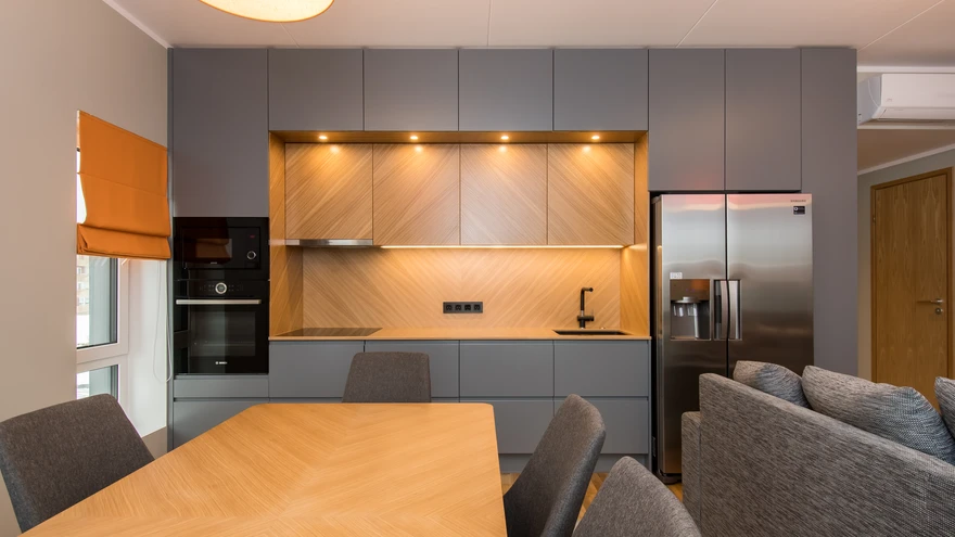 Keskmist trendikööki iseloomustavad näpujäljevaba pinnatöötlusega siledad mattuksed, metallraamis klaasvitriinid ja laeni kapid, mis on valdavalt hallikasbeeži tooni.