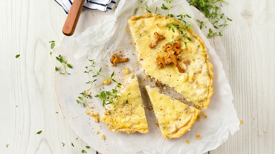 Vahetult enne serveerimist prae kõrvale tõstetud kukeseened võis läbi ja kaunista nendega pirukas.