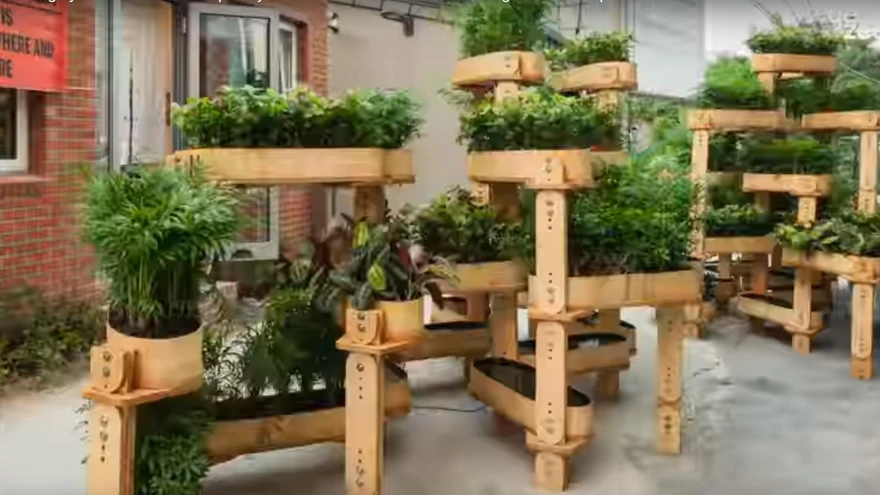 Vineerist linnaaiasüsteem toob tiheasustusega linnadesse uut hingamist. | foto: Kuvatõmmis videostVineerimoodulitest koosnev miniaiasüsteem Growmore võimaldab suurlinnades elavatel inimestel ehitada endale oma aianurk, kus kasvatada maitsetaimi ja köögivilju.