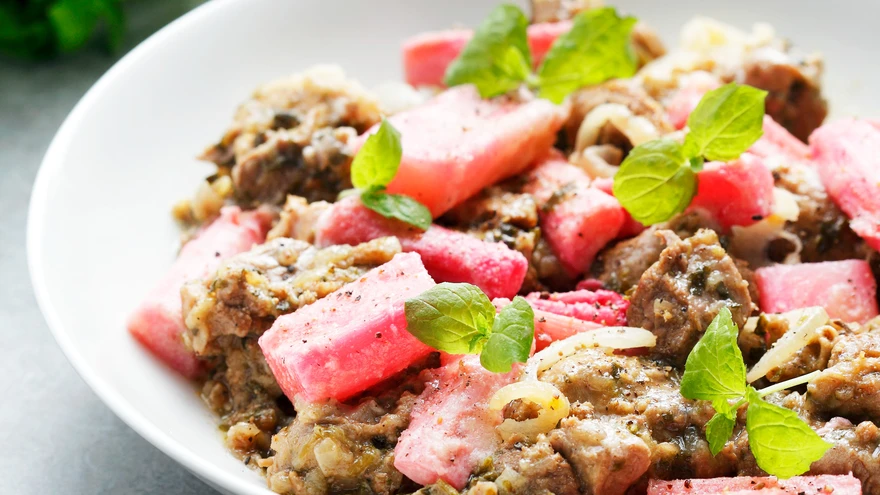 Lammas rabarberiga. | foto: Juta KübarseppSee roog on pärit kaugelt Pärsiast, kus puuviljade lisamine liharoogadele on üsna levinud. Serveeri näiteks riisiga. Muide, roog jääb maitsev ka sealihaga!