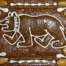 Hõõru tuhksuhkur ja vesi läikivaks võõbaks, määri koogile. Lõika neljakandilisteks tükkideks. Säilita küpsisekarbis.