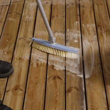 Suurema mustuse korral harja pinda veidi tugevama harjaga ja kasuta pinna loputamiseks survepesurit. Vältida tuleb liiga tugevat survet, et puitu mitte kahjustada. Sellise eeltöötluse puhul pääseb puiduõli sügavamale puitu ja pikendab viimistlusõli iga märgatavalt.
