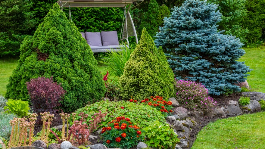 „Kodu kauniks 2023” finalist. | foto: Priit Grepp„Vaatan ja leian, et siin-seal võiks olla midagi värvilist,” selgitab Inna Kiviselja, kuidas ta koos abikaasa Reinuga kujundas looduslähedase aia, kus vormi pügatud okaspuud jaotavad selle justkui omaette värvilisteks postkaartideks.