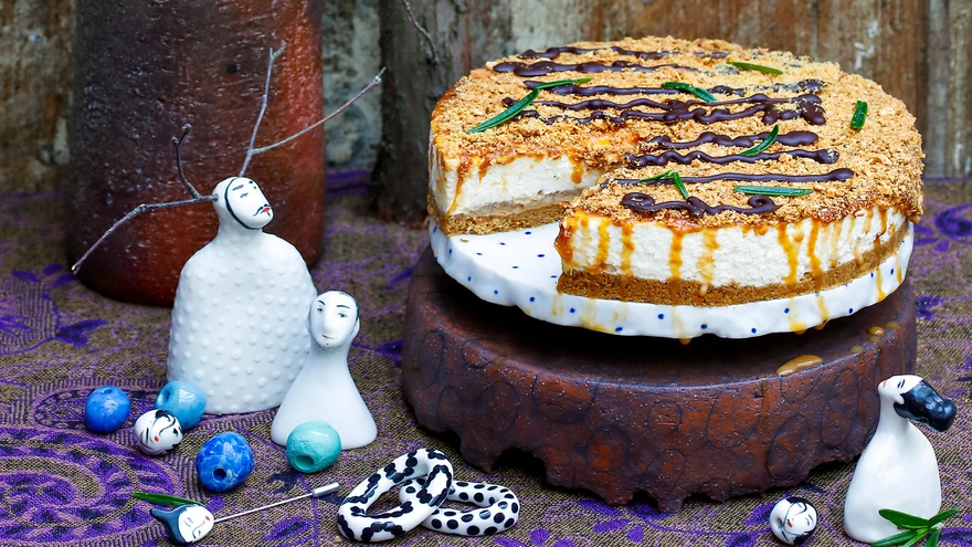 - Serveerides lisa näiteks soolakaramelli ning kaneeli ja digestiivküpsiste puru, millele on lisatud pisut jahvatatud nelki ja kardemoni.