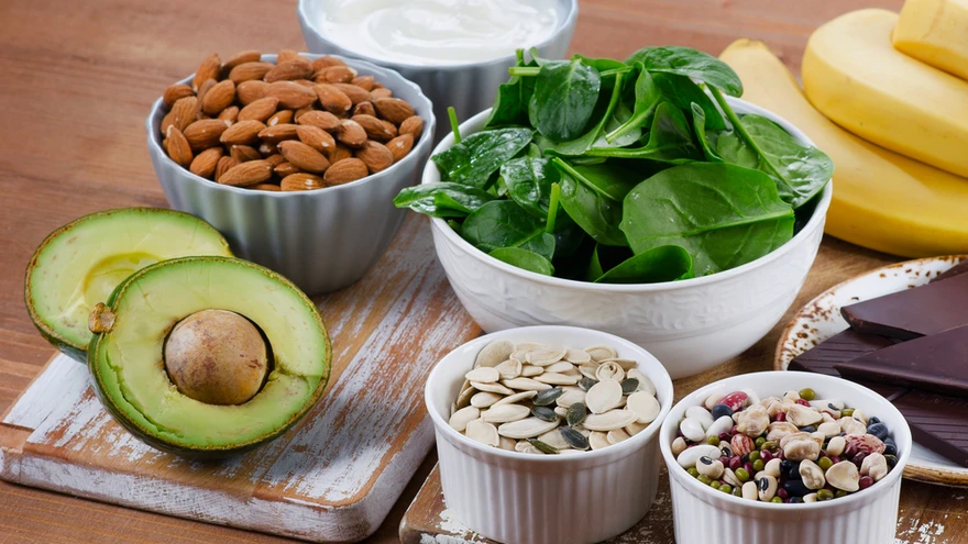 Magneesiumi puhul tuleks mõelda sellele, kas sööme piisavalt näiteks roheliste lehtedega aed- ja köögivilju või pähkleid, sest magneesiumit on enim just nendes toiduainetes. Samuti on heaks magneesiumiallikaks teraviljatooted, seemned, oad, tofu ning samuti tuunikala, lõhe, piimatooted ja vähilised.