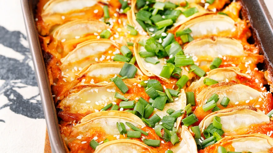 Küpseta 200-kraadises ahjus umbes 20 minutit või kuni pelmeenid on läbi küpsenud ja kaste paksenenud.