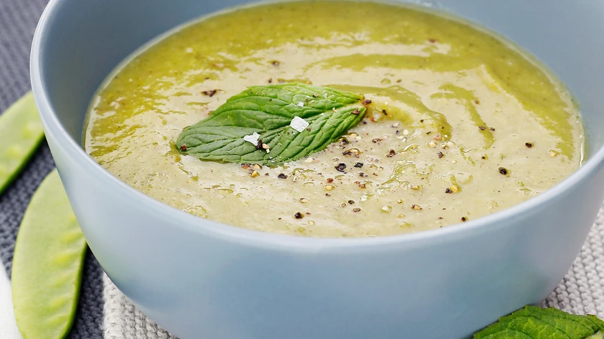 | foto: Juta KübarseppVärske münt ja suhkruherned on imetabane kooslus. Siin kohtuvad need ühes toredas supis, mida võib serveerida nii kuumalt kui ka külmalt.