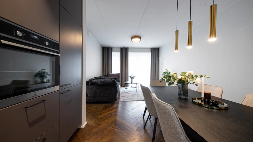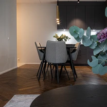 Ta toob välja, et Kesk-Peetris on väga populaarseks saanud siseviimistluse premium-paketi valikusse kuuluv kalasabamustriline parkett, mis veel mõned aastad tagasi tundus paljudele liiga julge, aga täna on igati kodune ja kindel valik ka neutraalsema viimistlusega tubades.