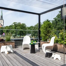 Väikestele pereliikmetele on samuti olemas vahvaid disainlahendusi, nagu näiteks mänguasjakujulised lapsemõõtu istmed ja toolid. Kes väikestest tegelastest ei tahaks istuda väikese valge elevandi seljas (mis on tegelikult korralik taburet) või kiikuda hobusekujulises kiiktoolis? Need on praktilised lahendused, mis annavad terrassile mängulisust ja lustakat nüanssi, ning samas saab selliseid toole suve möödumisel lastetuppa tagasi tõsta ning tubastes tingimustes edasi kasutada.