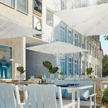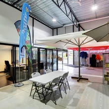 Küljel asetseva tugipostiga tugeva konstruktsiooniga päikesevarjud võimaldavad varjualust ala vabalt kasutada.