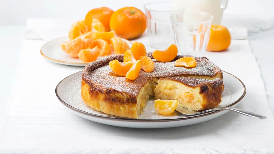 Võta ahjust ja lase jahtuda. Võta vormist ning pane vähemalt tunniks külmkappi. Kaunista mandariinidega ja puista peale tuhksuhkrut.