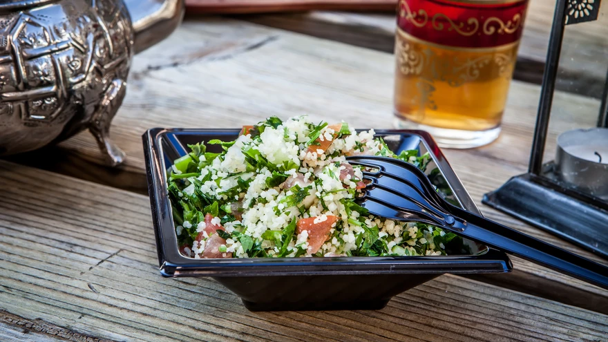 Sega pehmenenud kuskuss kahvliga sõmeraks. Lisa korralikult segades aedviljad, ürdid ja õli-sidrunikaste.