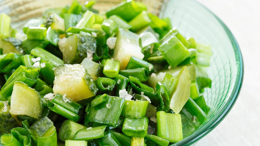 Rohelise sibula salat hapukurgiga