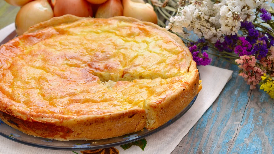 • Vahusta munad, lisa koor ja riivjuust, sega. Sega pool muna-kooresegust sibulatäidisele.