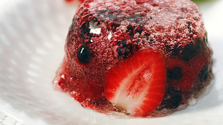 NB! Kuna vahuveini ei kuumutata, siis alkohol tarretises säilib. Edukalt saab seda magustoitu teha ka näiteks alkoholivaba siidri või Sprite´iga. Oluline on, et vedelik ja marjad oleksid hästi külmad, siis jäävad mullid paremini tarretise sisse. Külmutatud marju ära eelnevalt sulata. Pea meeles, et ananassi ega kiivit ei saa tarretistes kasutada, sest need ei lase segul kallerduda!