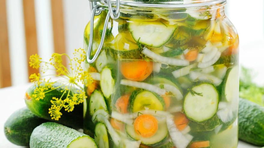 Lõika sibulad ja kurgid (pool)viiludeks, porgand väikesteks kuubikuteks või poolviiludeks. Sega suures potis ülejäänud ainetega. Kata kinni ja lase jahedas ruumis 24 tundi maitsestuda.