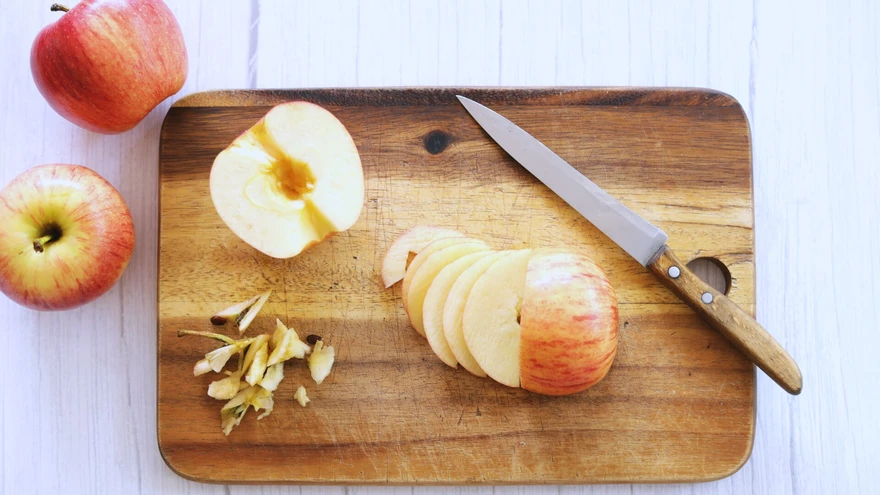 2. Lõika õunad pooleks, eemalda noaotsaga südamik ja viiluta peenelt.